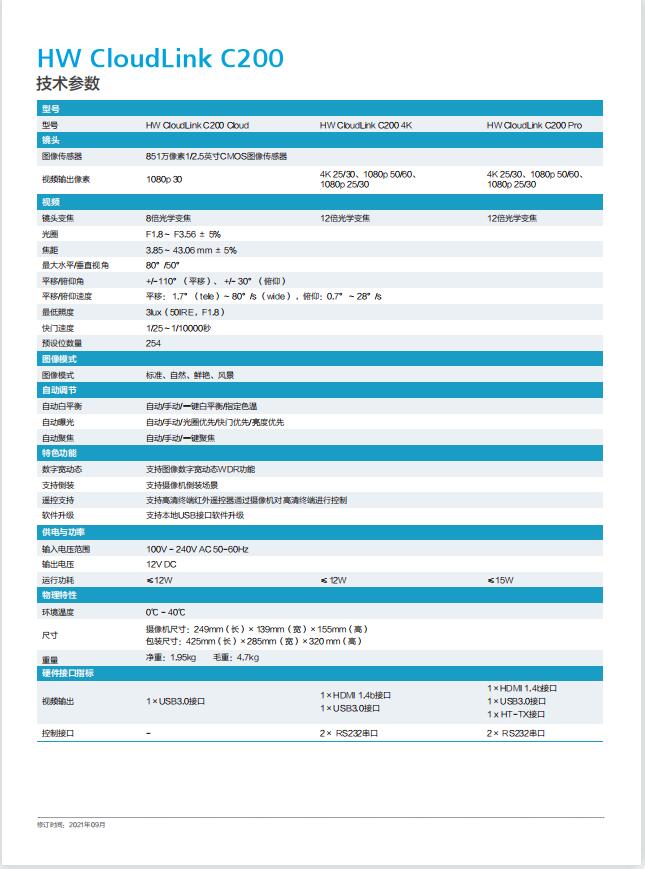 華為/Huawei HW CloudLink C200 通用攝像機 4K超高清PTZ攝像機